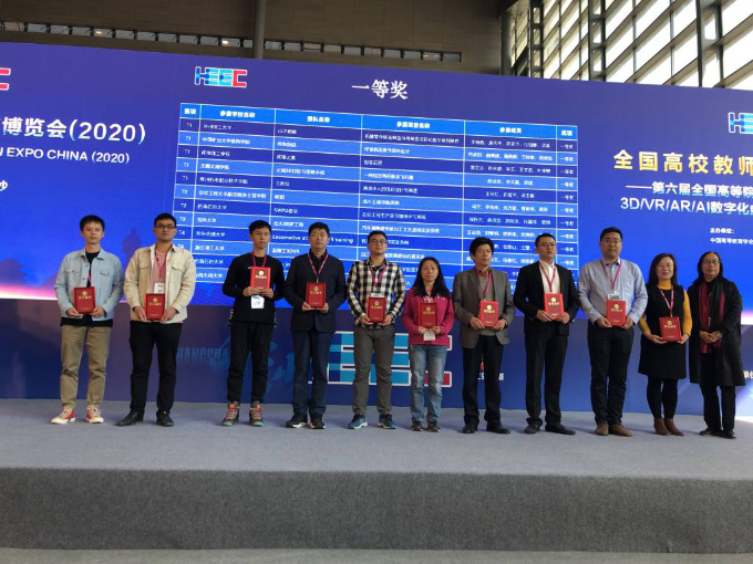 11月10日,全国高校教师教学创新大赛——第六届全国高等院校工程应用技术教师大赛3D/VR/AR/AI数字化虚拟仿真主题赛项的颁奖典礼在长沙举办。我校获得一等奖2项,二等奖1项,三等奖2项。获奖总数和一等奖总数均居全国第一。