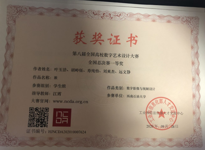 近日,“未来设计师”杯第八届全国高校数字艺术设计大赛(NCDA)国赛评选结果揭晓,我院选送的作品获得一等奖1项,二等奖3项,三等奖3项的好成绩。此前在四川赛区的成绩是一等奖5项,二等奖14项,三等奖11项。